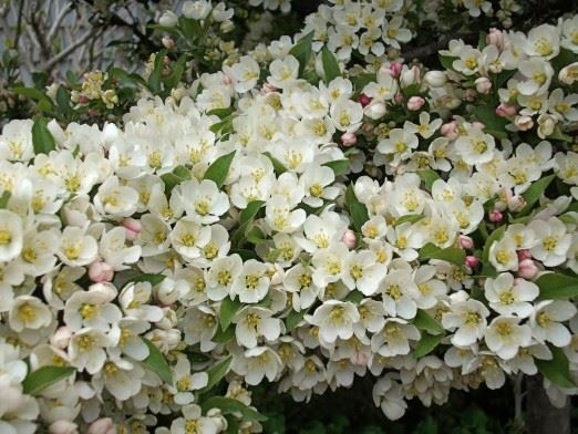Forme pleureuse greffé en tête. Boutons floraux rose foncé. Floraison parfumée abondante et fruits qui persistent longtemps.