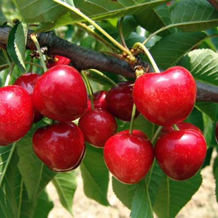 Récolte mi-juillet. Fruits fermes rouge foncé à noir. Pollinisation croisée avec Rainier, Stella, Lapins ou Bing , Semblable au type Bing mais plus rustique.