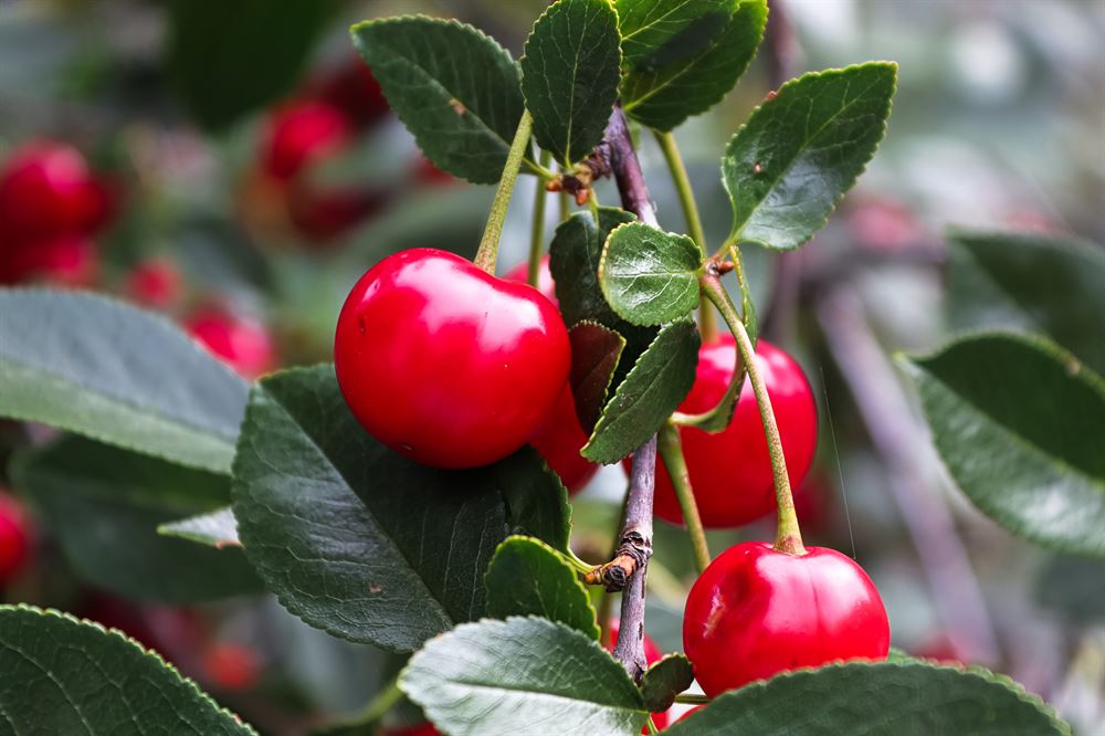 Récolte fin juillet. Auto-fertile. Fruits larges rouge clair, semi sucrés, idéals pour la cuisson ou le vin.