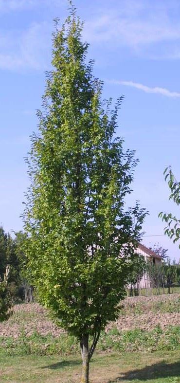 Sélection de forme pyramidale étroite ou colonnaire au feuillage vert moyen à jaune en automne – ne produit pas de fruits – petit arbre utile pour jardin urbain.