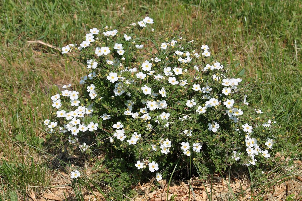 Arbuste au port rampant et au feuillage vert foncé, bleuté et denté. Ses grandes fleurs blanches apparaissent tout au long de l’été. Cet arbuste demande d’être taillé au printemps pour conserver sa forme.