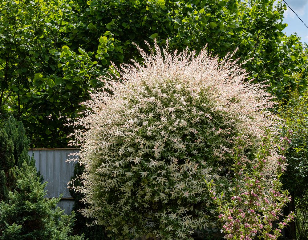 Petit arbuste vigoureux dont les jeunes pousses sont un mélange de vert, de blanc et de rose du plus bel effet! Les branches rougeâtres sont souples, donnant du mouvement à la plante au moindres vent! Rabattre de moitié chaque printemps pour obtenir de nouvelles pousses roses.