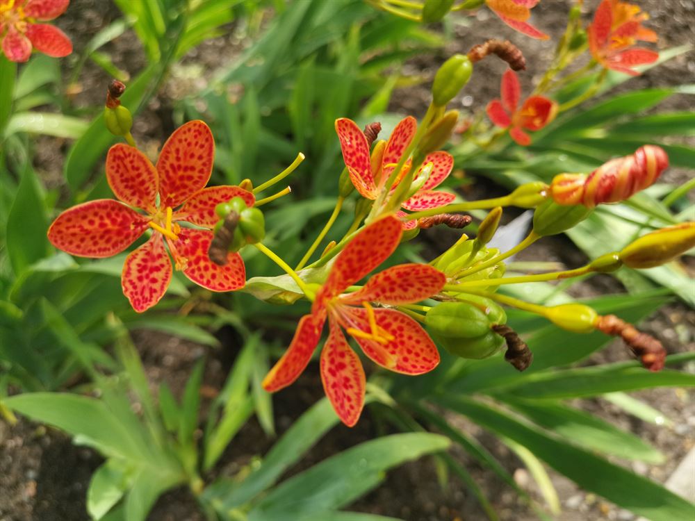 Plante aux feuilles en forme de glaives et aux fleurs oranges tachetées de pourpre. Nécessite une terre ordinaire et bien drainé, pas trop sèche en été. La pose d’un paillis est conseillé.