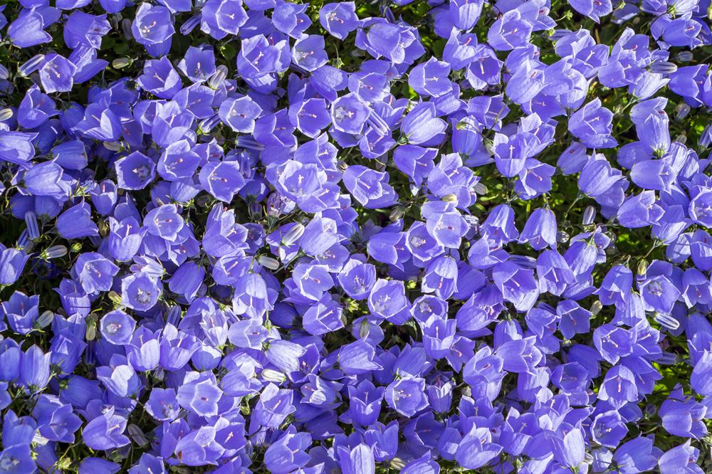 Petit coussin compact de fleurs bleues en forme de clochettes. Tailler les fleurs fanées pour stimuler une floraison continue. Utilisations: massif, plate-bande, bordure. Tolère la sécheresse. Croissance rapide, facile d’entretien.