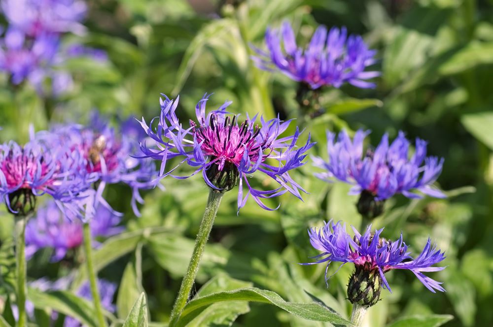 Belle vivace d’un vrai bleu éclatant, robuste de plein soleil. Elle se contente d’un sol pauvre et dégage un léger parfum fruité. Les fleurs sont comestibles et très décoratives dans les glaçons, sur les desserts ou dans les salades. Taillez du tiers après la floraison, le plant se tiendra mieux et vous offrira souvent une petite refloraison.