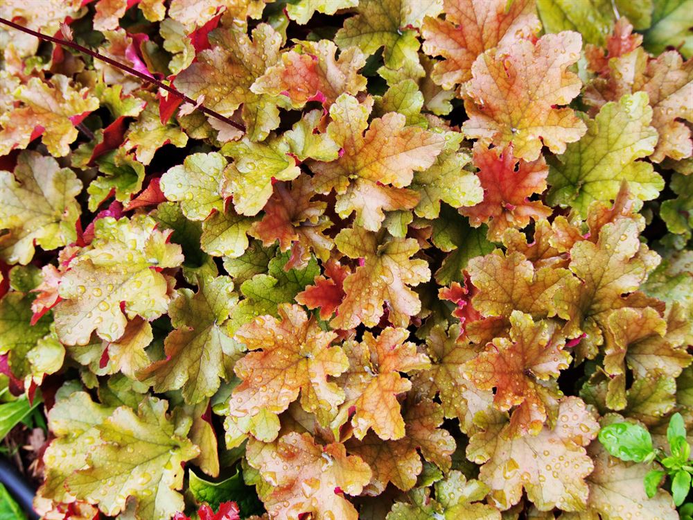 Une coloration chaude et riche où se mêlent le vert lime, le jaune doré, le rose et le rose saumon. Une nouveauté qui fera des vagues. Cette heuchère préfère les sols bien drainés.